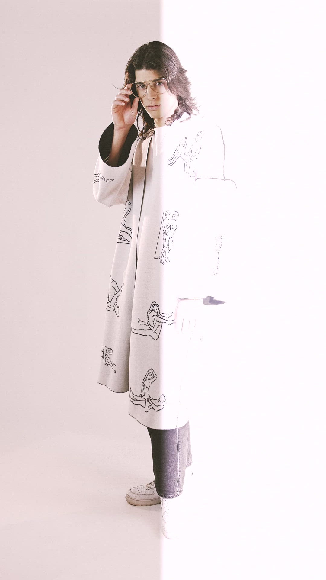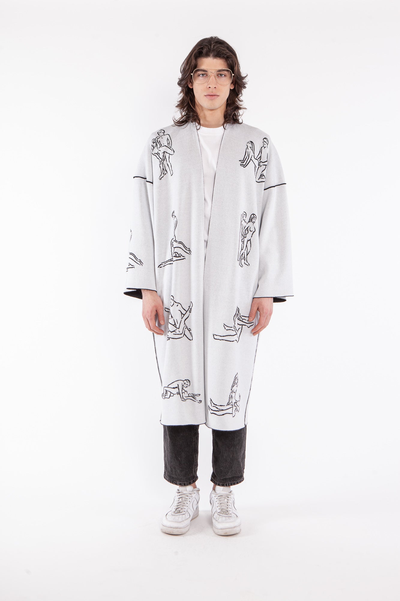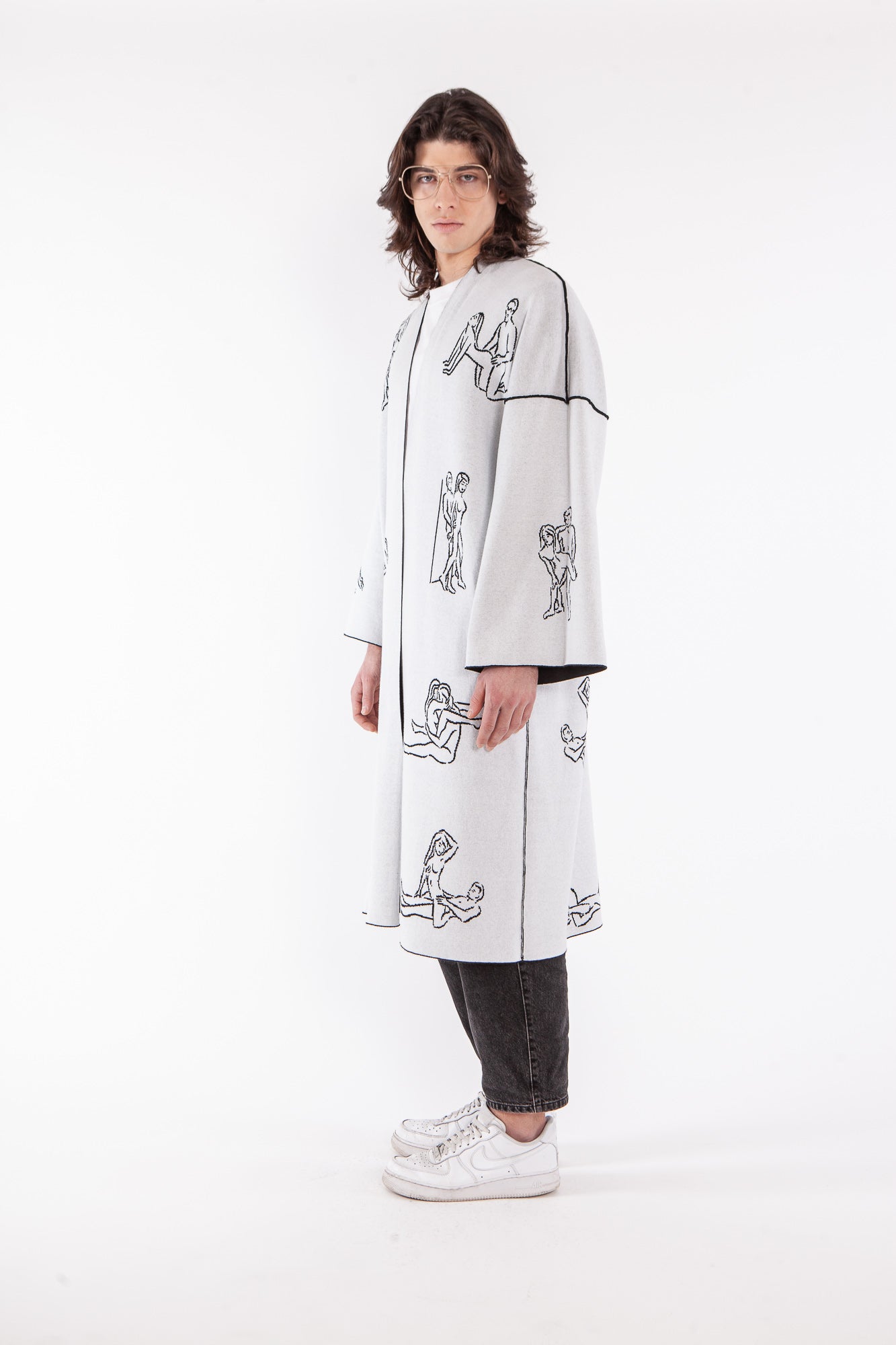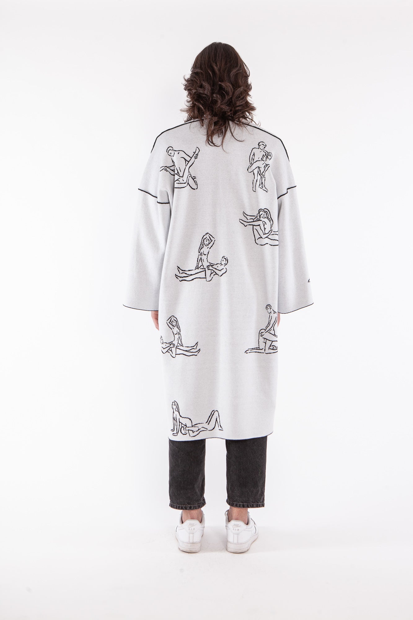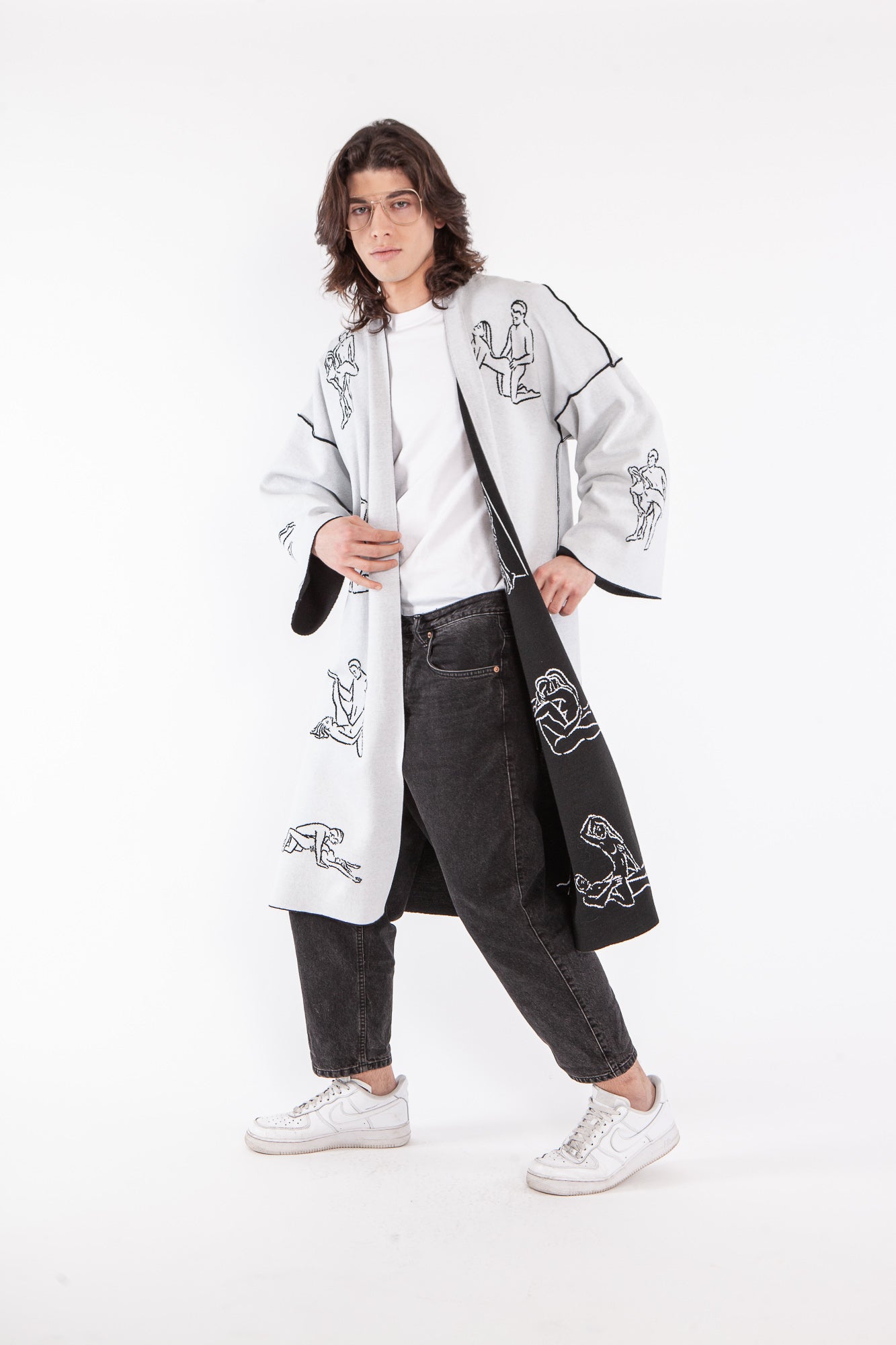 Positive / negative graphic design: external side black with white images, internal side white with black images.