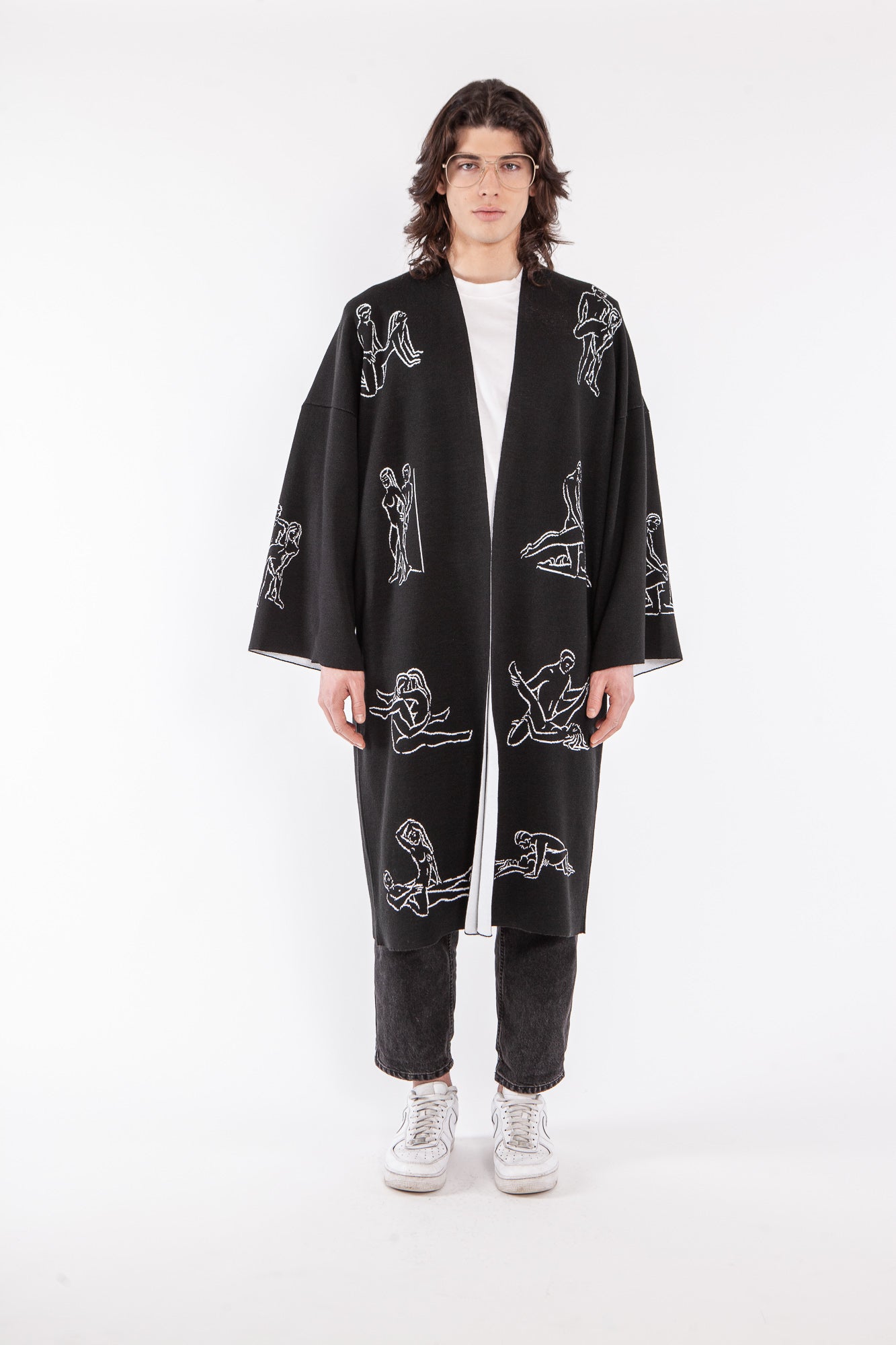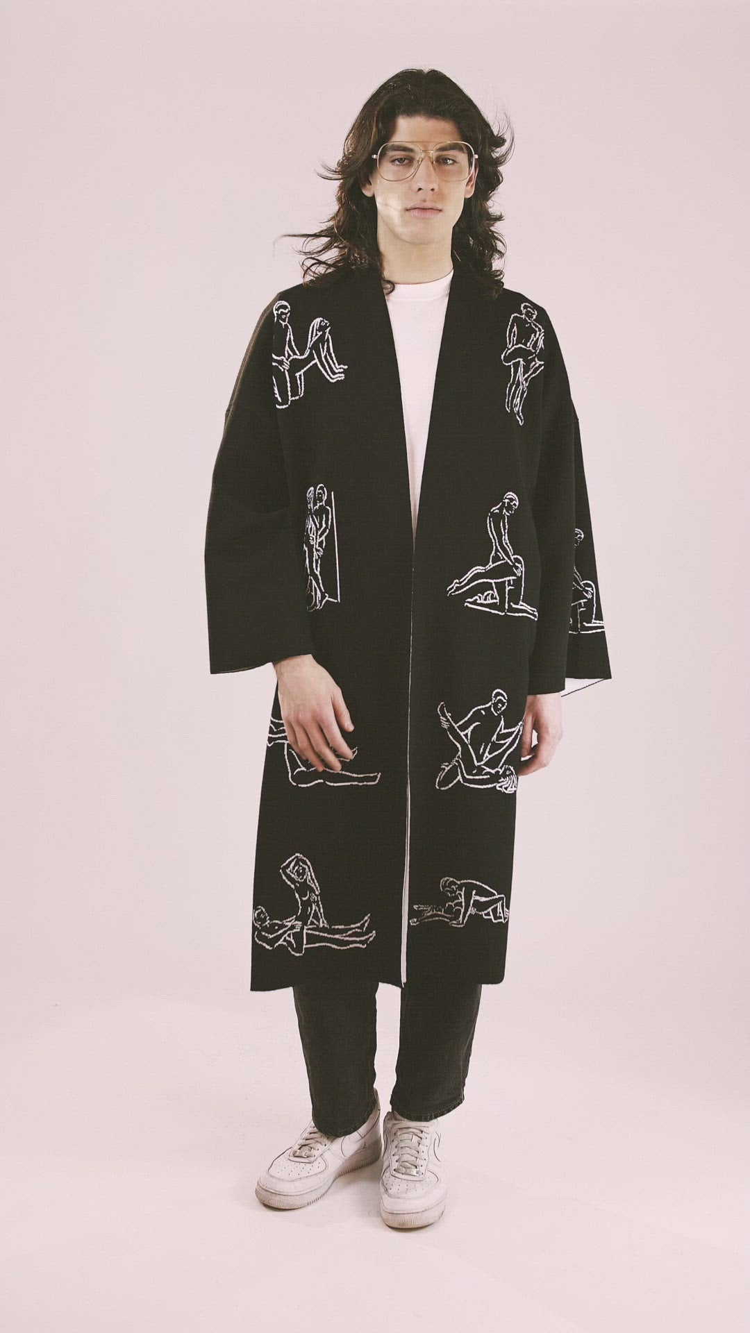 Grafica positiva/negativa: lato esterno nero con immagini bianche, lato interno bianco con immagini nere.